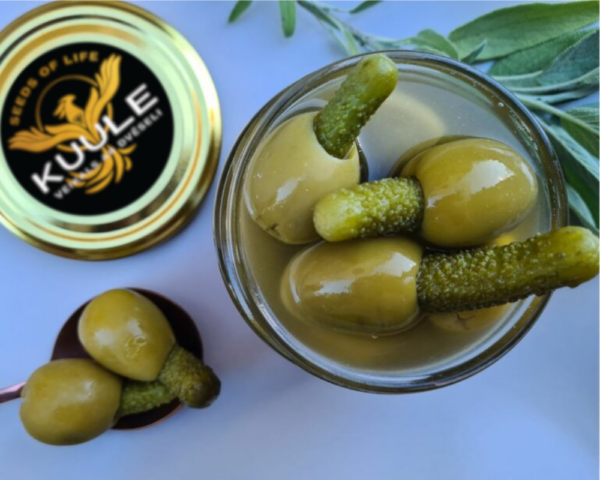Gurķīšu kraukšķīgums lieliski kontrastē ar sulīgajām olīvām, savukārt anšovu notis piešķir dziļumu un Vidusjūras raksturu. Šīs olīvas būs lieliska izvēle uzkodu platei, svētku galdam vai kā oriģināla un garšīga dāvana.